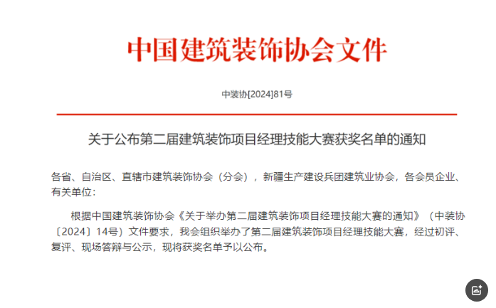 推進建筑裝飾行業(yè)工業(yè)化、數(shù)字化、綠色化、裝配化轉型升級,中國建筑裝飾協(xié)會舉辦了(第二屆)建筑裝飾項目經理技能大賽。